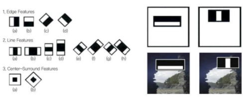 - 주어진 이미지의 영역 간의 밝기 차를 이용하는 방법으로 Haar Features, Ferns, LBP, MCT 알고리즘