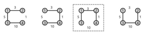 - 최소 신장 트리(Minimum Spanning Tree): 신장 트리의 간선에 비용이 있을 때, 이 비용을 최소화하는 신장 트리