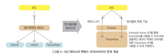 - 모든 종류의 신경망을 만들고, 훈련하고, 평가하며, 사용할 수 있는 고수준 딥러닝 API