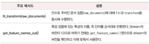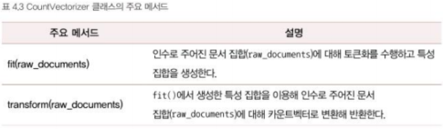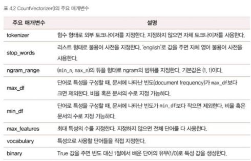 #cv = CountVectorizer() #모든 매개변수에 디폴트 값을 사용하는 경우