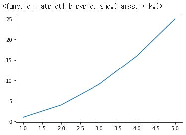 plt.plot([1, 2, 3, 4, 5], [1, 4, 9, 16, 25])