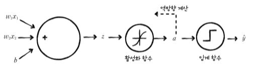마지막 단계에서 샘풀을 이진 분류하기 위하여 계단함수를 사용