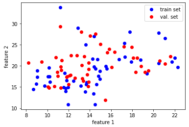 1. 원본 훈련 세트와 검증 세트로 산점도 그리기
