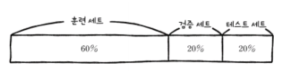 테스트 세트로 모델을 튜닝하면 '테스트 세트에 대해서만 좋은 성능을 보여주는 모델'이 되어 일반화 성능(generalization performance)이 왜곡된다.