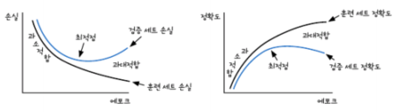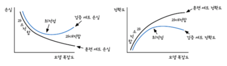 과대적합(overfitting): 모델이 훈련 세트에서는 좋은 성능을 내지만 검증 세트에서는 낮은 성능을 내는 경우