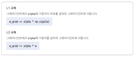 SGDClassifier 클래스에서는 penalty 매개변수를 l2로 지정해서 추가가능